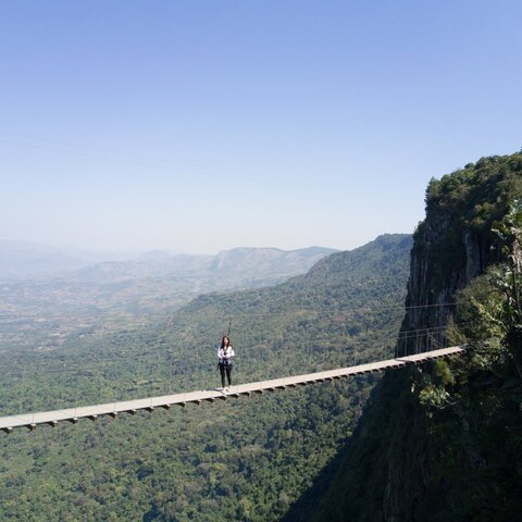 The town of Victoria Falls is known as the adventure capital of Africa. The variety of activities is exceptional: Bungee-jumping, whitewater rafting, helicopter flights, a swim in the “Devils-Pool”, moonlight trips to the Rainforest Reserve and an elephant encounter are just some of the options.