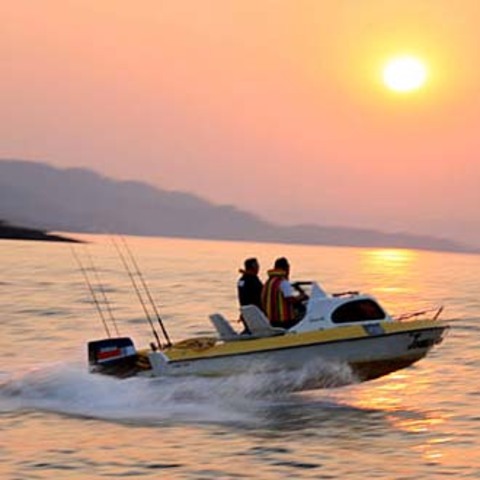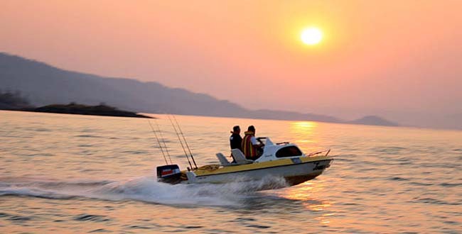 Spurwing Island in the Matusadona Game reserve in Lake Kariba in Zimbabwe is an excellent safari destination and popular with fishermen.